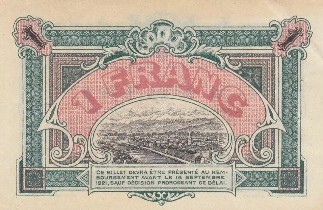 Home > French Banknotes > Necessity Money (1789-1945) > City and Municipal Bonds 1914-1925 > France 1 Franc - Chamber of Commerce - Grenoble - 14-09-1916 - Serial 147