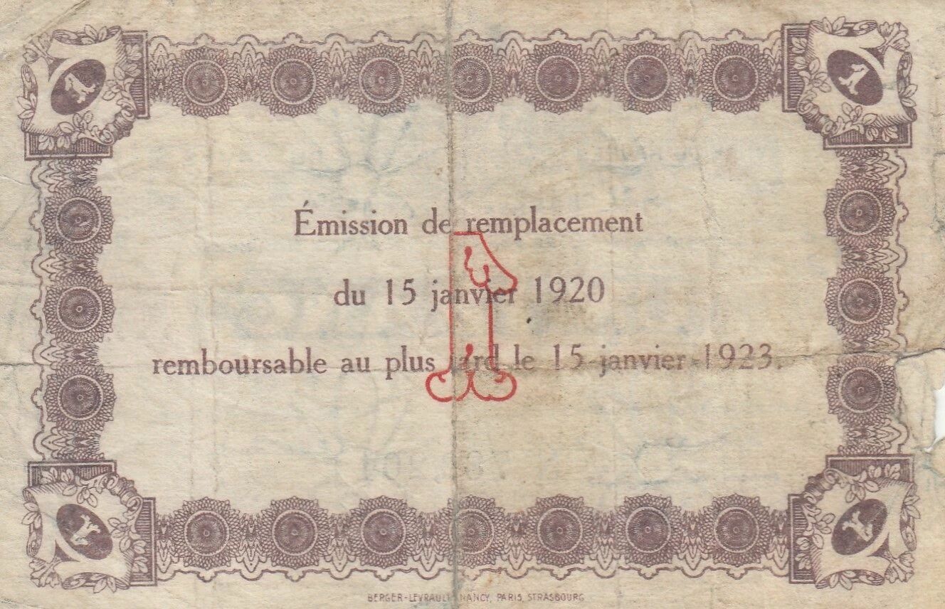 This emergency banknote testifies to a period when local institutions compensated for the lack of official currency by issuing their own denominations. It represents a historical testimony of alternative monetary practices put in place to facilitate local economic exchanges in times of crisis.