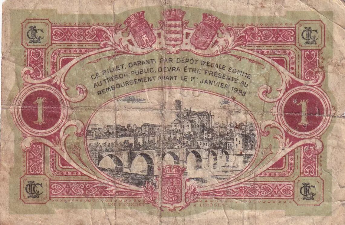 This 1 Franc banknote from the Limoges Chamber of Commerce offers an insight into local monetary practices in France during a specific period, and its design reflects the aesthetic and informative standards of the time.