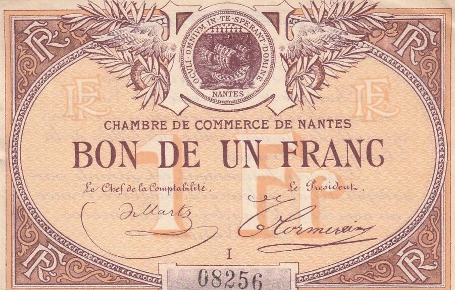 The 1 Franc banknote issued by the Nantes Chamber of Commerce in 1919 is a testimony to French monetary history. This banknote, from Series I, was produced in a particular economic context, where chambers of commerce were authorized to issue emergency currency.