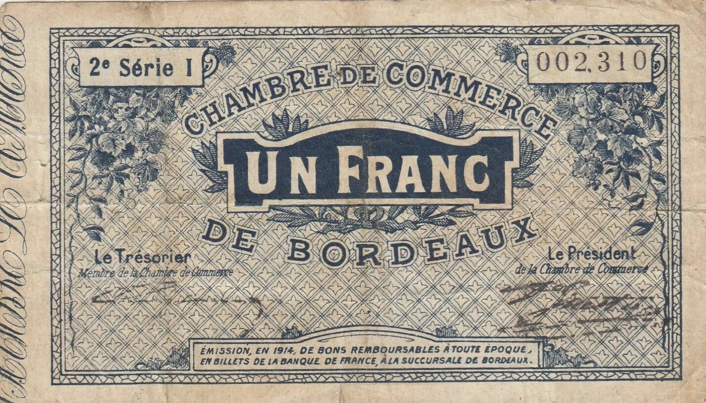 Billet France 1 Franc - Chambre de commerce - Bordeaux - 1914