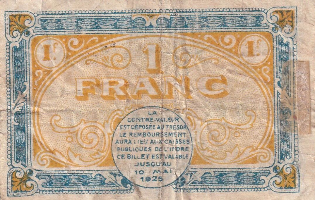 Ce billet de 1 Franc, émis par la Chambre de Commerce de Châteauroux, date de l'année 1920.