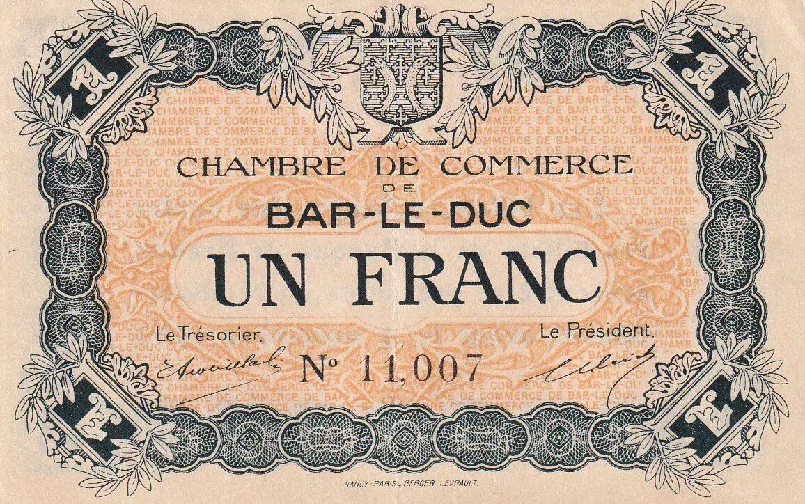 Billet France 1 Franc - Chambre de commerce de Bar-le-Duc - P.19-03