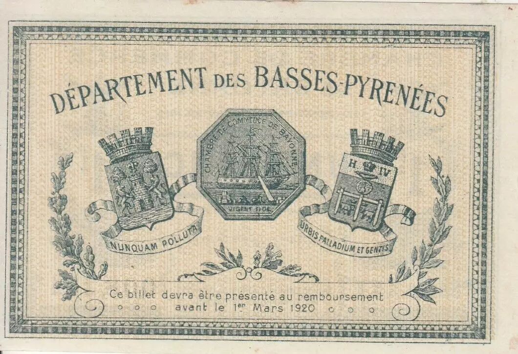 Ce billet de 1 franc a été émis par la Chambre de Commerce de Bayonne le 16 janvier 1915. Il appartient à la Série XXX.