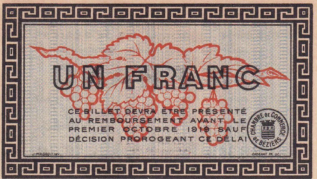 Accueil > Archivage > France 1 Franc - Chambre de commerce de Béziers - 1914 - Série B 12.70 - P.27-8