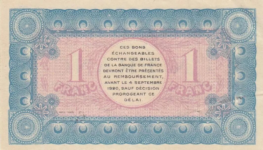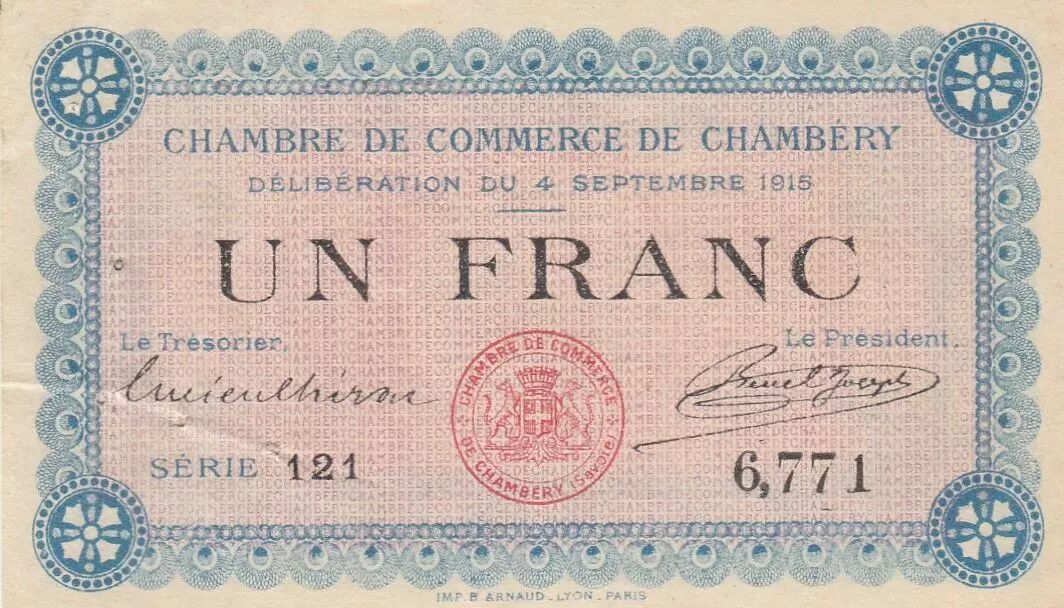 Billet France 1 Franc - Chambre de Commerce de Chambéry - 04-09-1915 - Série 121