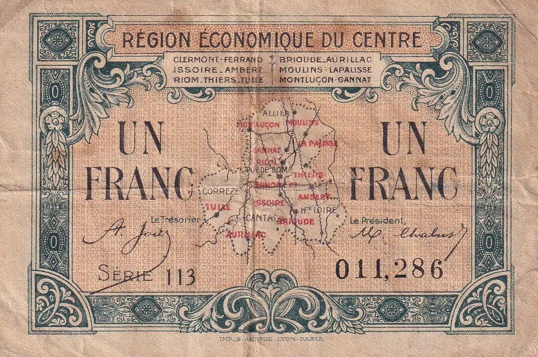 Banknote France 1 Franc - Chambre de commerce de la Région économique du Centre - ND - Serial 113 - P.40-7