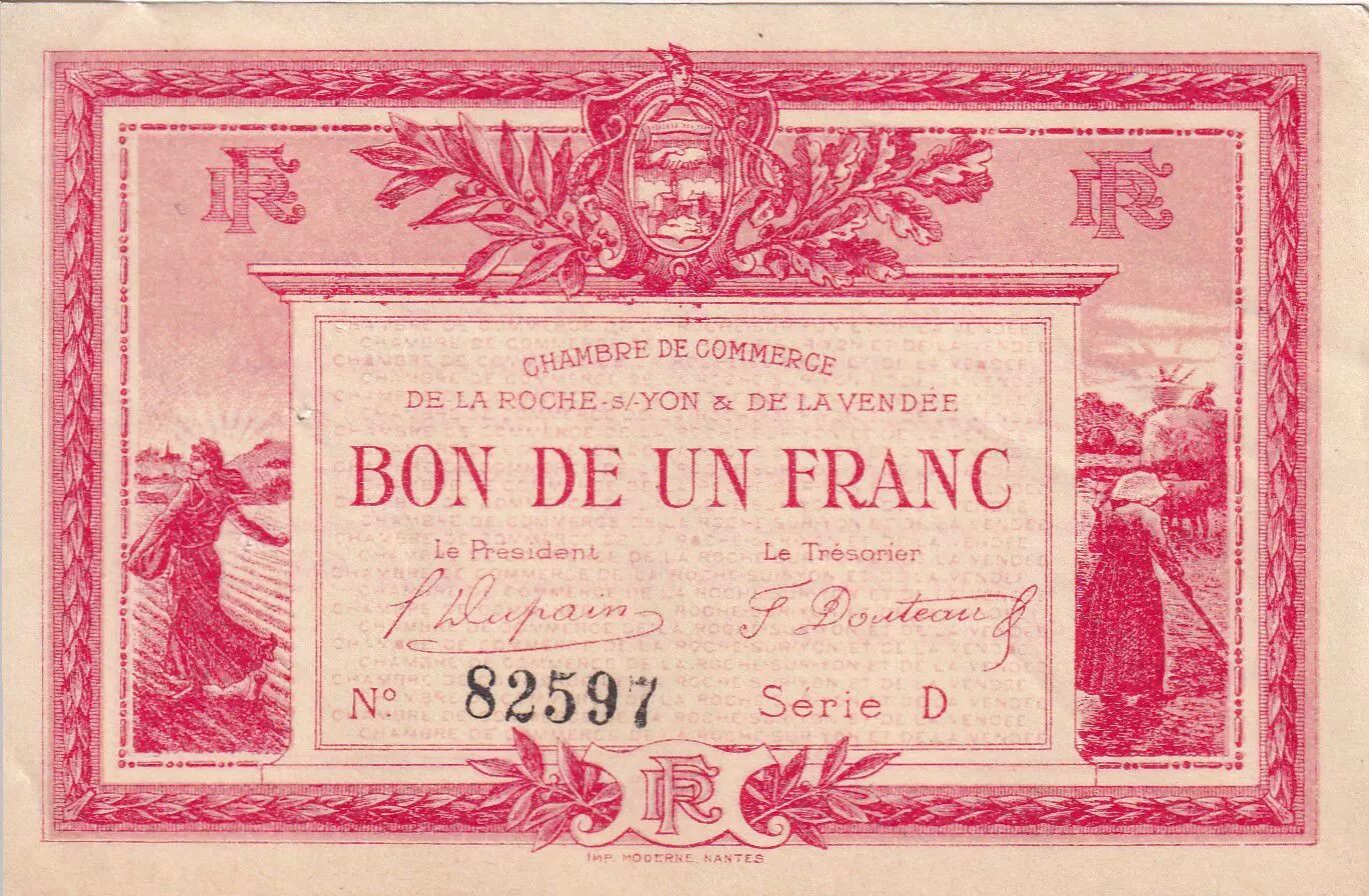 Banknote France 1 Franc - Chambre de commerce de la Roche sur Yon & de la Vendée - Serial D - P.65-17