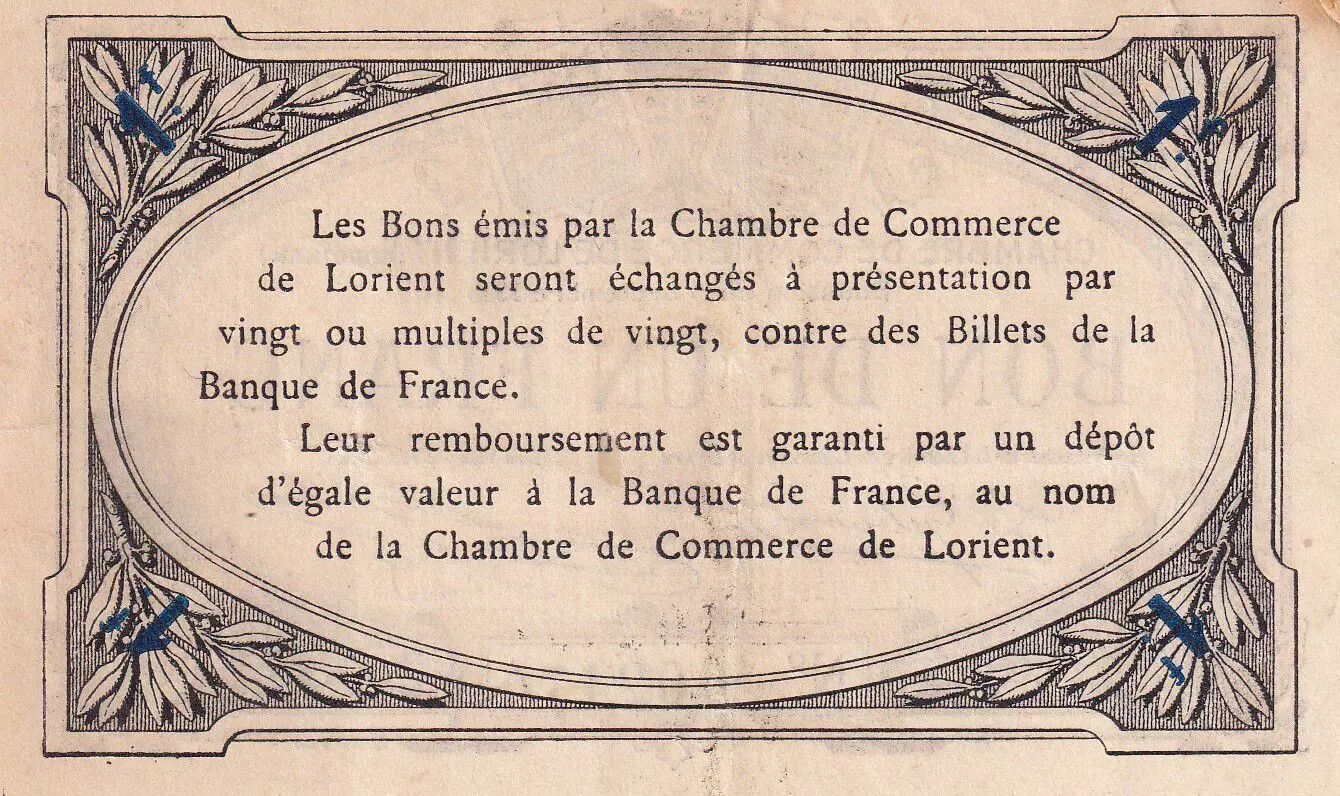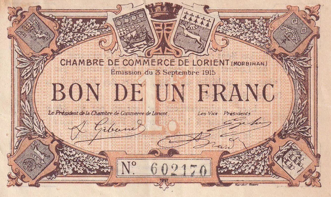 Accueil > Archivage > France 1 Franc - Chambre de commerce de Lorient - 1915 - P.75-2