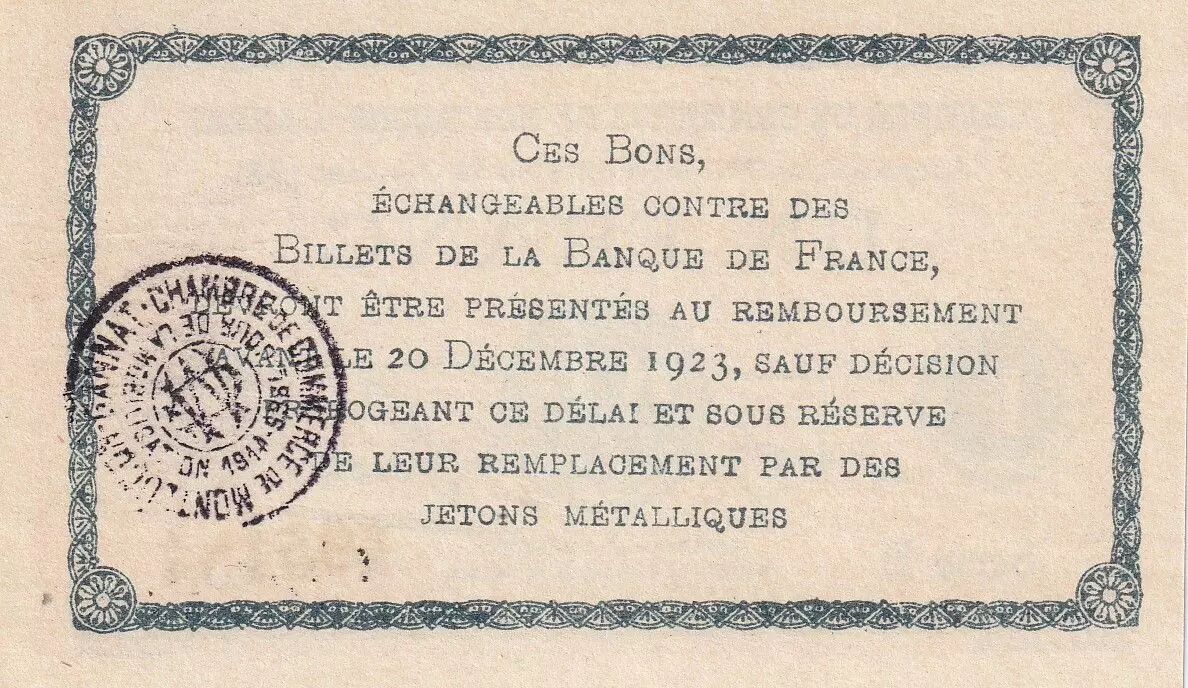 Billet France 1 Franc - Chambre de commerce de Montluçon-Gannat - Série B - P.84-58