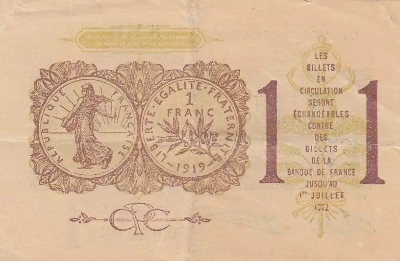 Billet France 1 franc - Chambre de commerce de Paris - 1919 - Série H.11