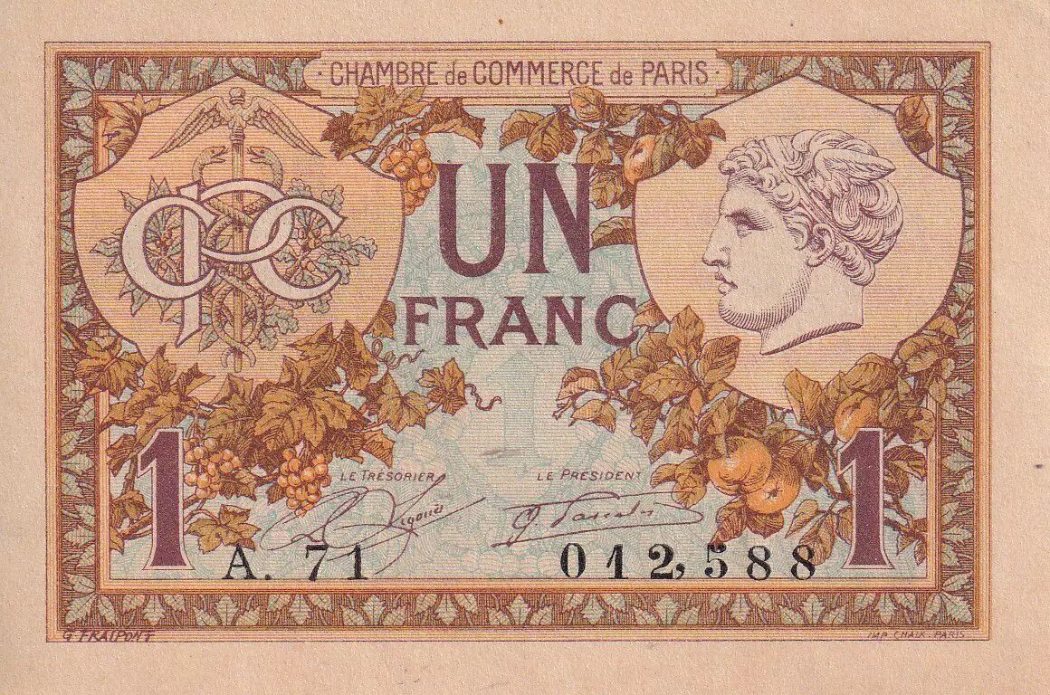 Home > > France 1 Franc - Chambre de commerce de Paris - 1920 - Serial A.71 - P.97-36