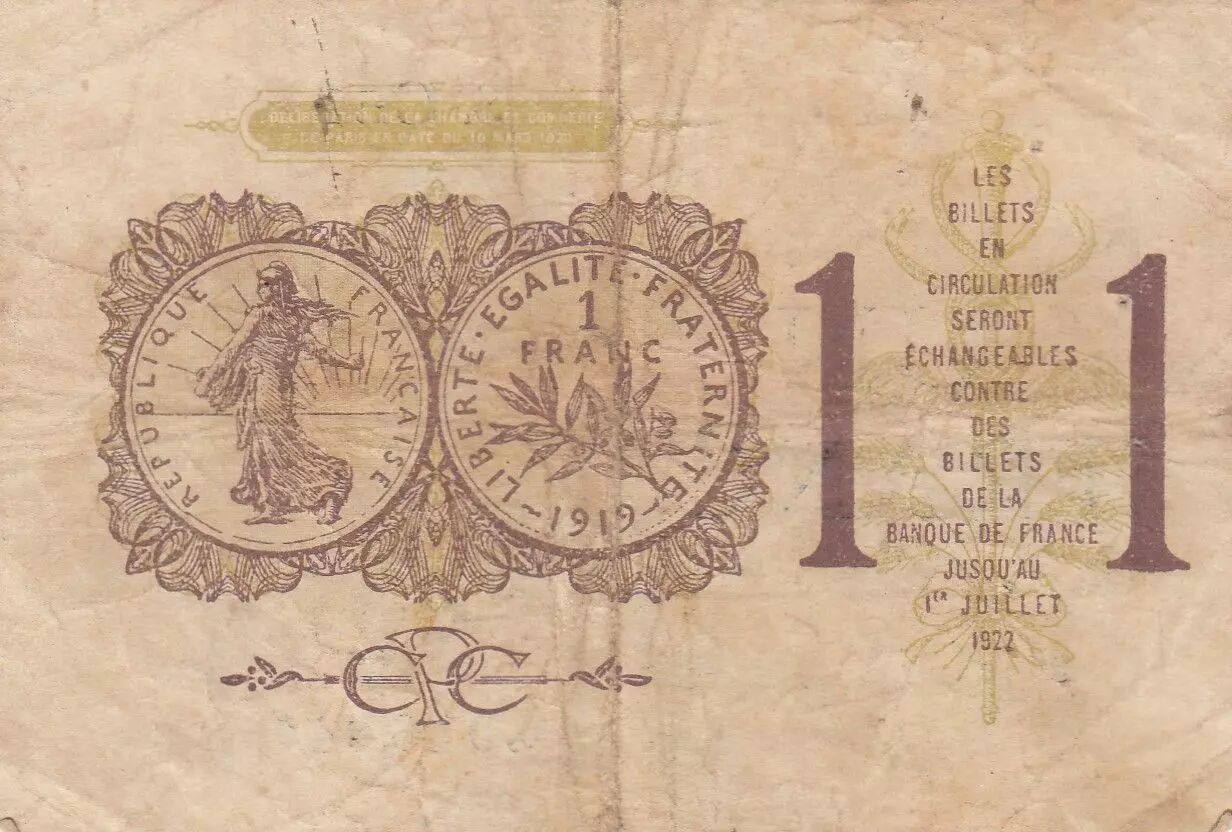 Billet France 1 Franc - Chambre de commerce de Paris - 1920 - Série S.C57