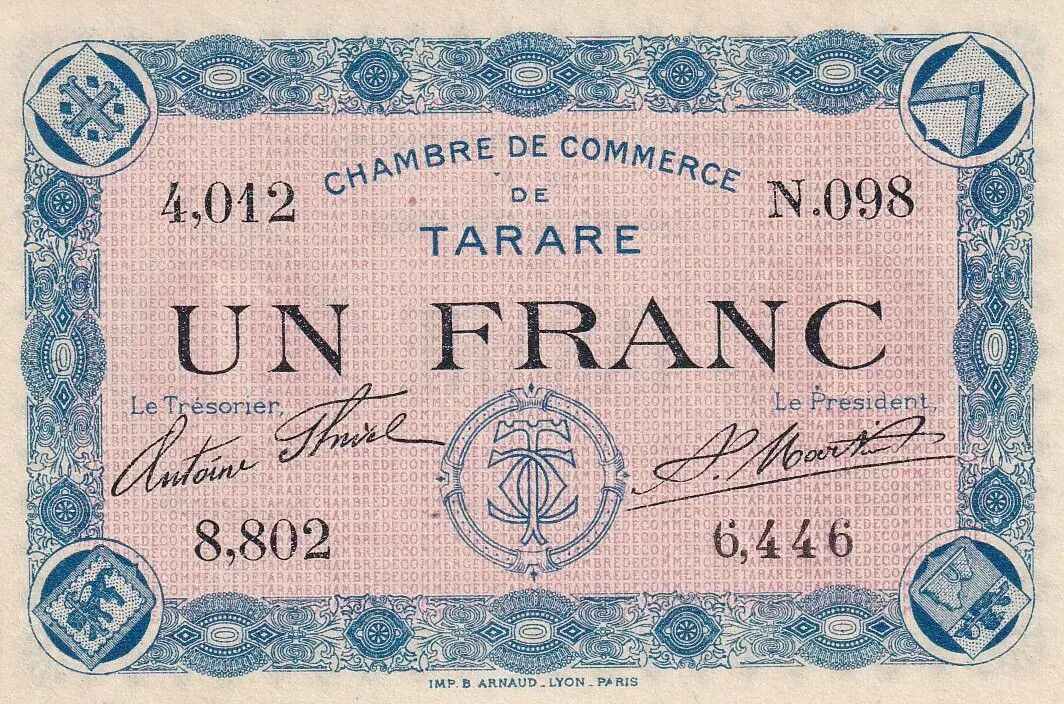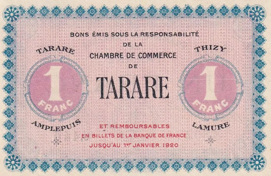 Banknote France 1 Franc - Chambre de commerce de Tarare - Serial N.098 - P.119-1