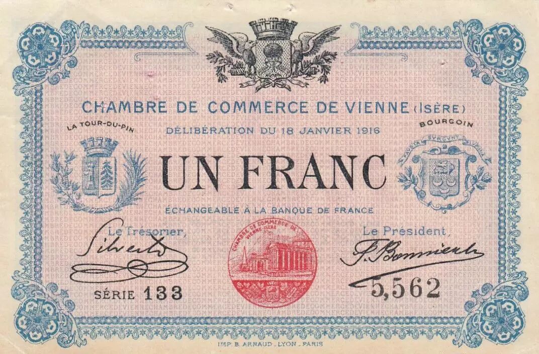 Billet France 1 Franc - Chambre de Commerce de Vienne - 18-01-1916 - Série 133