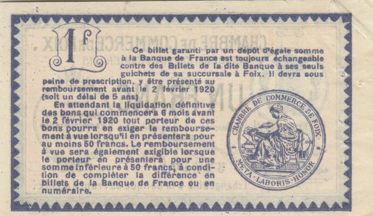 Accueil > Archivage > archivage-Billets Français > France 1 Franc - Chambre de Commerce - Foix - 02-02-1915 - Série 327