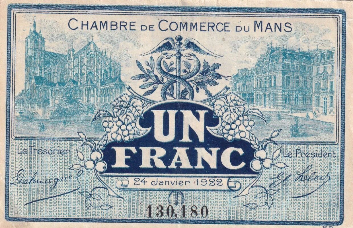 Billet France 1 Franc - Chambre de commerce - Le Mans - 24-01-1922 - 4ème série