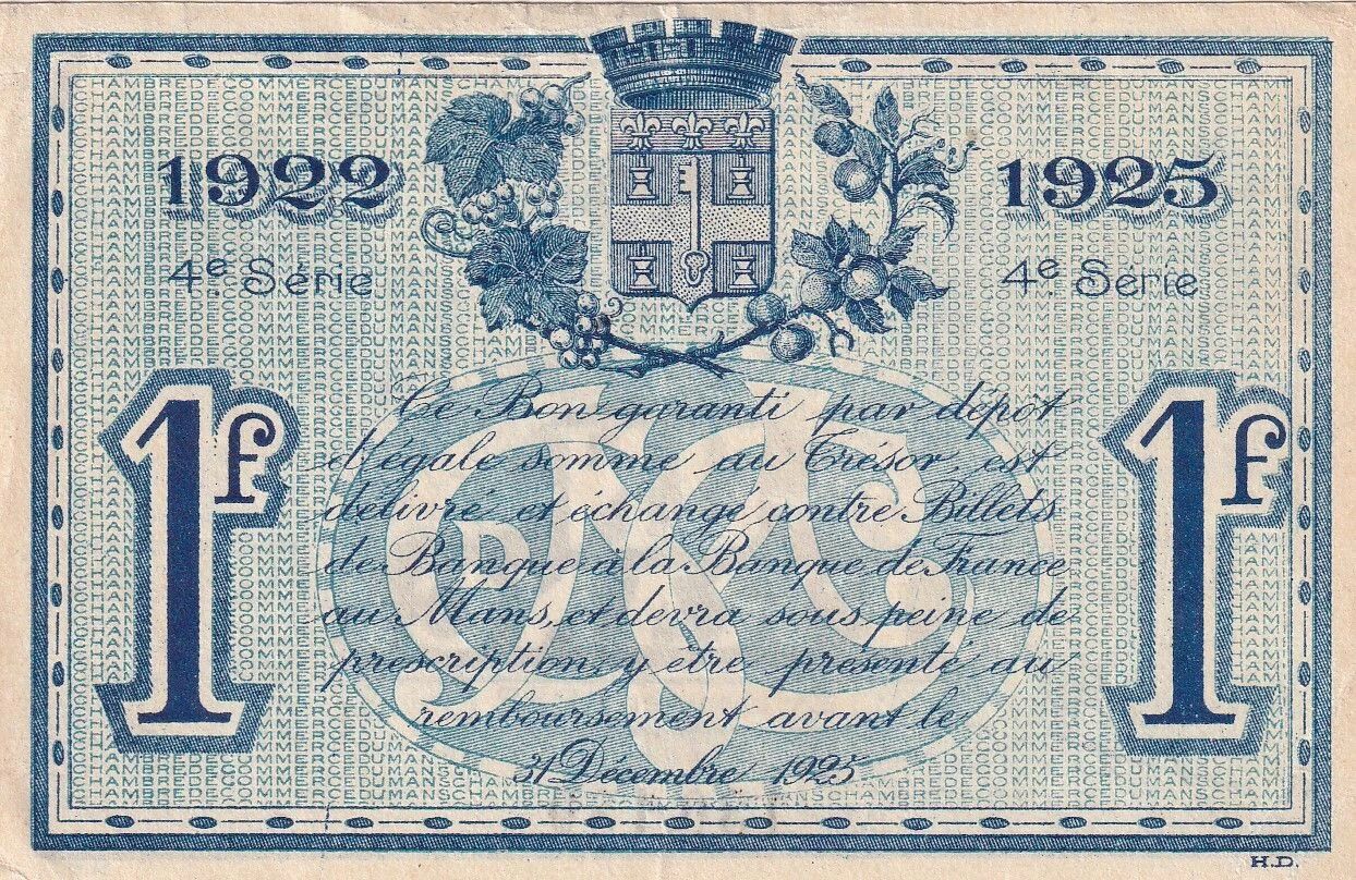 Accueil > Billets Français > Billets de Nécessités (1789-1945) > 1914-1925 Chambre de Commerce > France 1 Franc - Chambre de commerce - Le Mans - 24-01-1922 - 4ème série