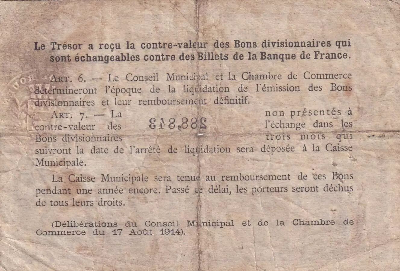This one-franc replacement note, issued by the Rouen Chamber of Commerce in 1922, is a testament to a time when local institutions made up for shortages of national currency. The note is a historical document reflecting the economic challenges of the era.