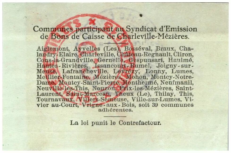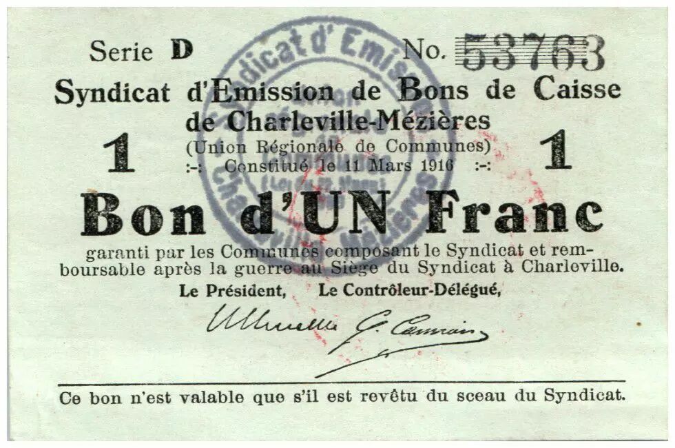 Banknote France 1 Franc Charleville-Mézières City - 1916