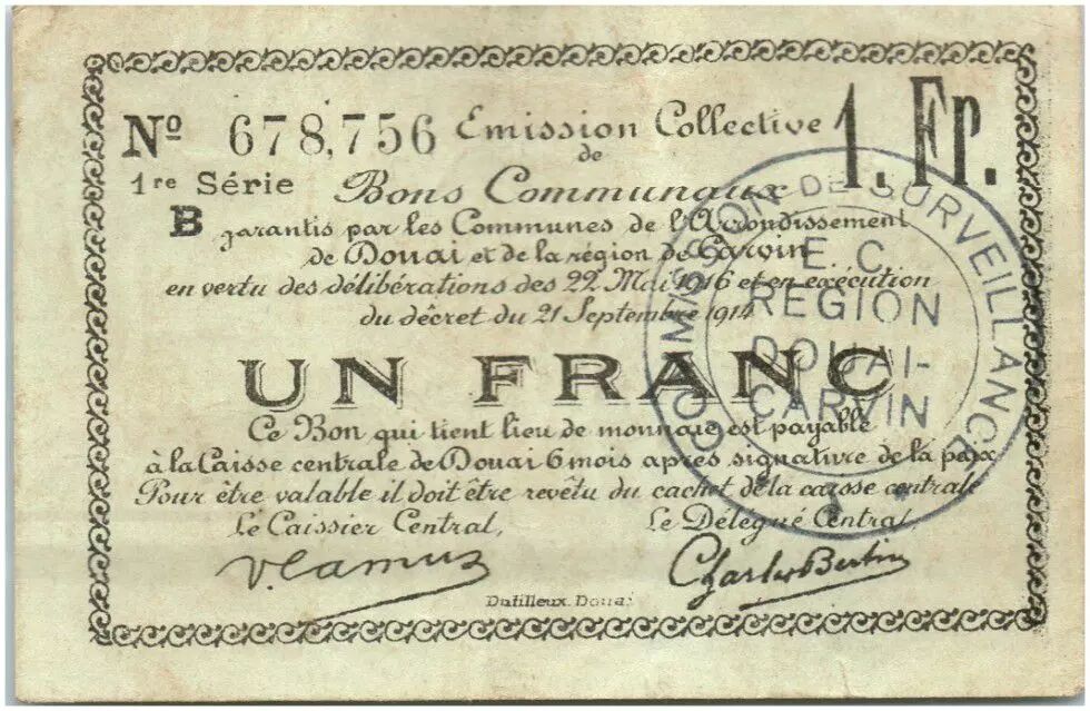 Banknote France 1 Franc Douai City - 1914