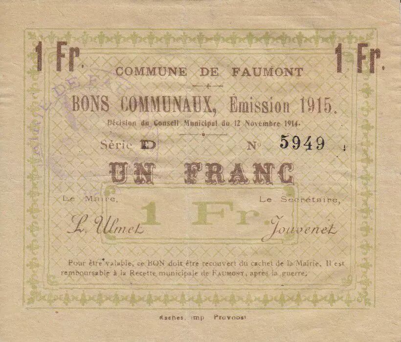 Les Billets des Communes et des Villes (Pir. 59.892)