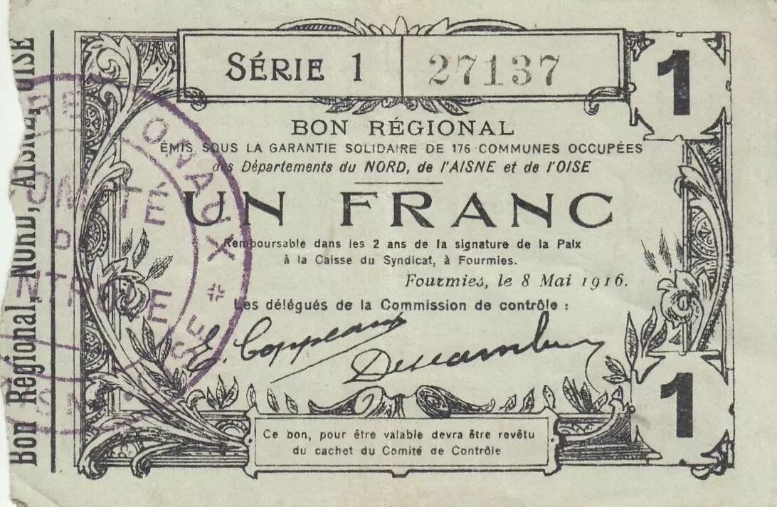 Billet France 1 Franc - Fourmies - Bon Régional - 08-05-1916 - Série 1
