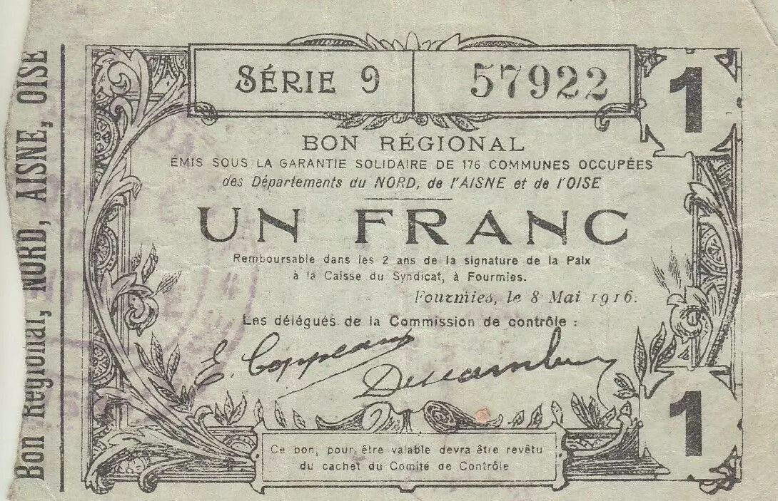 Billet France 1 Franc - Fourmies - Bon Régional - 08-05-1916 - Série 9