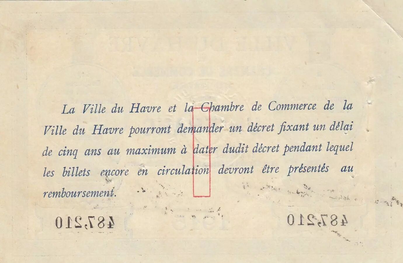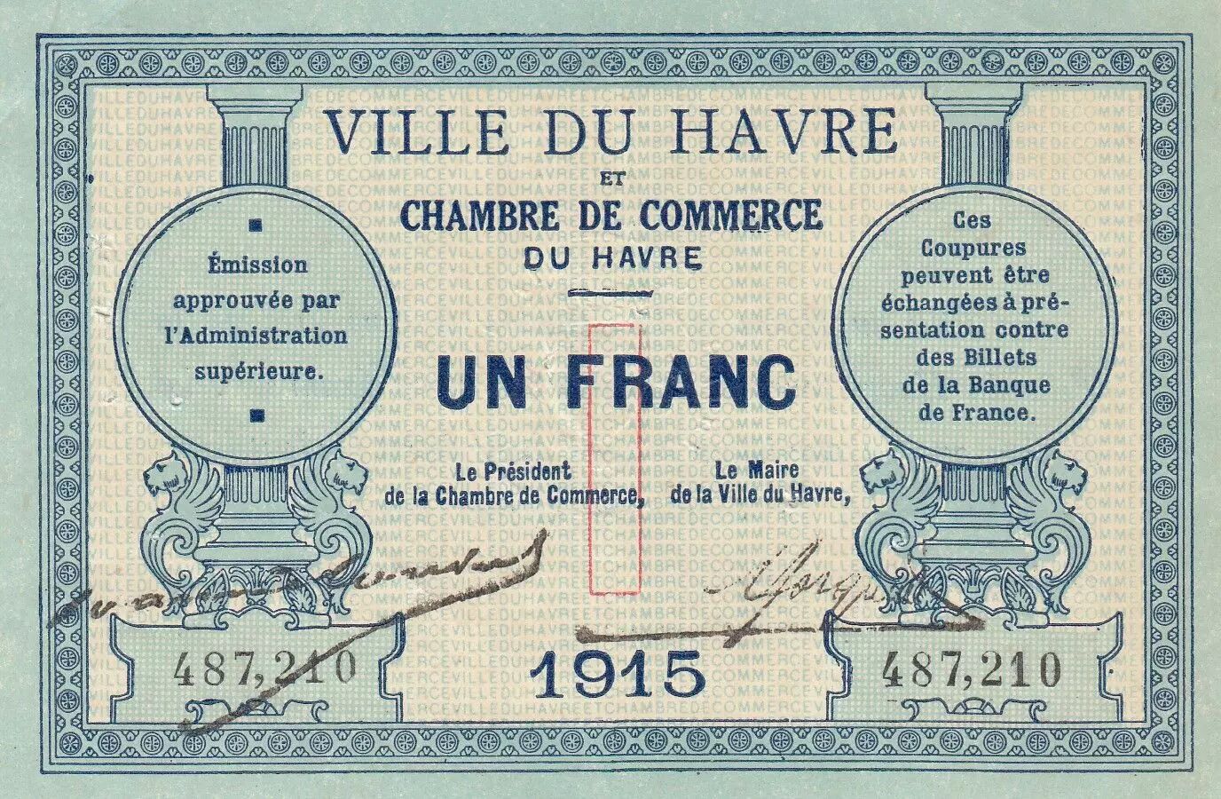 Billet France 1 Franc - Havre - Chambre de Commerce - 1915