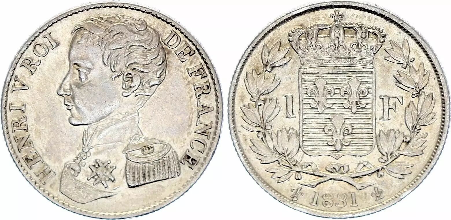 Pièce France 1 Franc Henri V Prétendant - 1831 - Argent