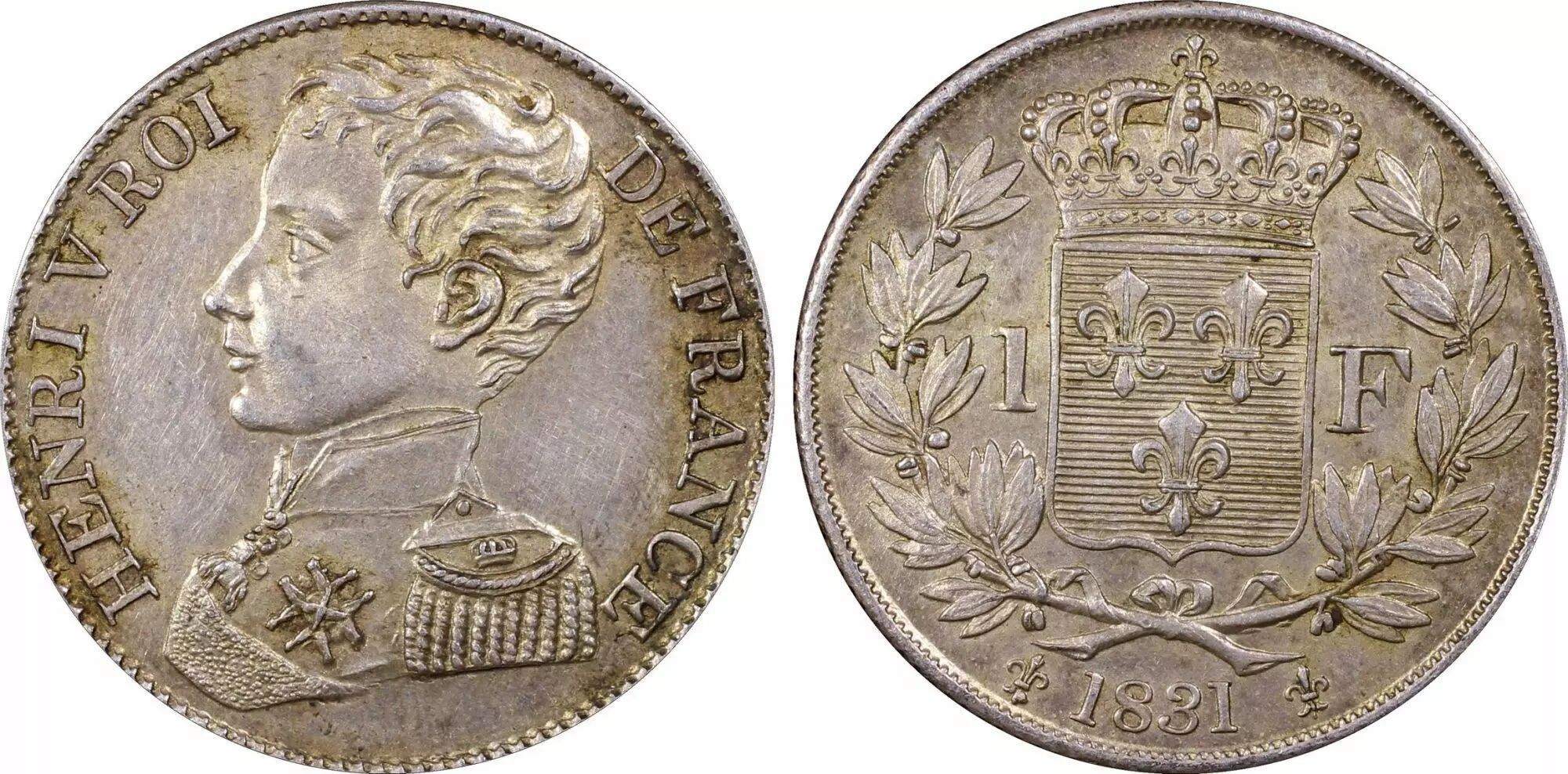 Pièce France 1 Franc, Henri V Prétendant - 1831 - PCGS SP 62 - SPL