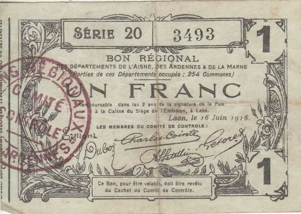 Billet France 1 Franc - Laon - Bon Régional - 16-06-1916 - Série 20