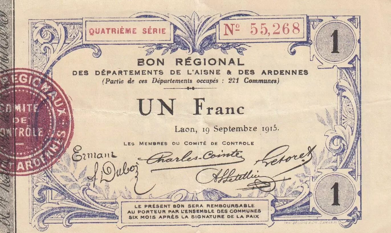 Billet France 1 Franc - Laon - Bon Régional - 19-09-1915 - Quatrième Série