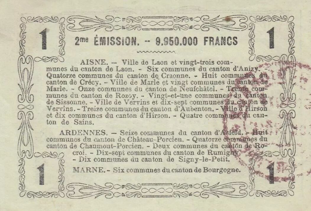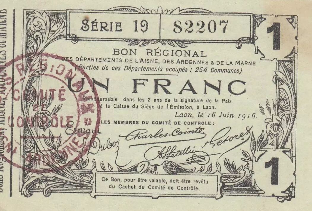 Banknote France 1 Franc - Laon - Regional Coupon - 16-06-1916 - Serial 19