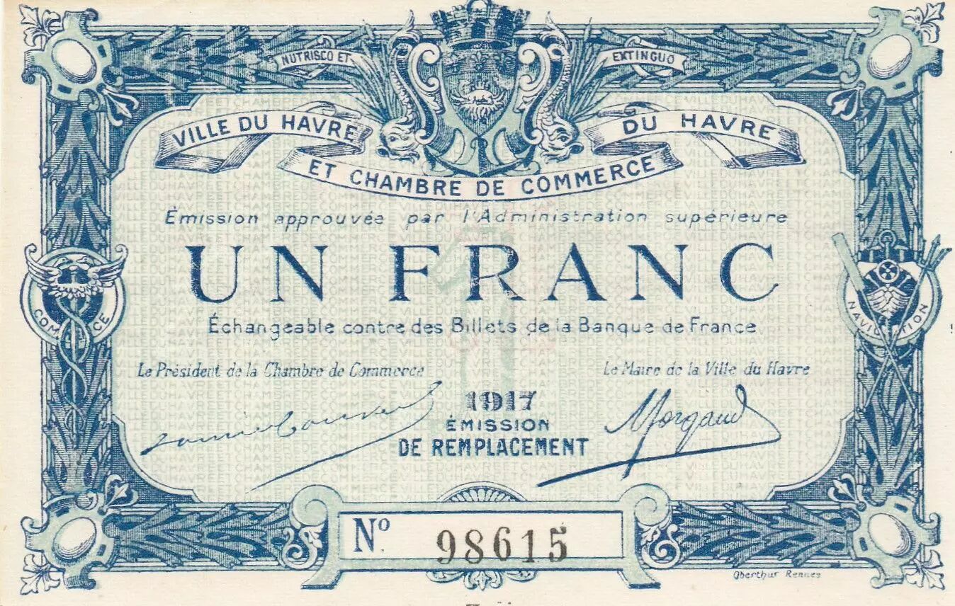 Banknote France 1 Franc - Le Havre Chamber of Commerce- 1917 - Replacement emission