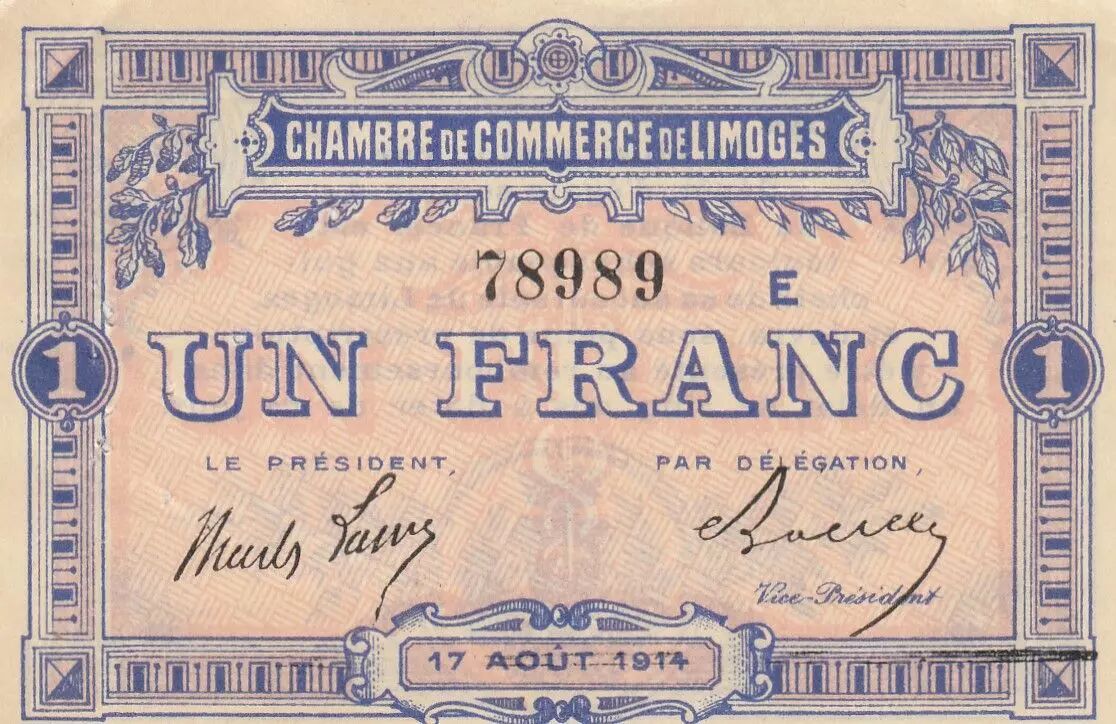 Banknote France 1 Franc - Limoge - Chamber of Commerce - 17-04-1914 - Serial E