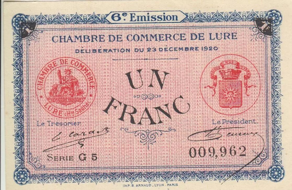 Billet France 1 Franc - Lure - Chambre de Commerce - 23-12-1920 - Série G5