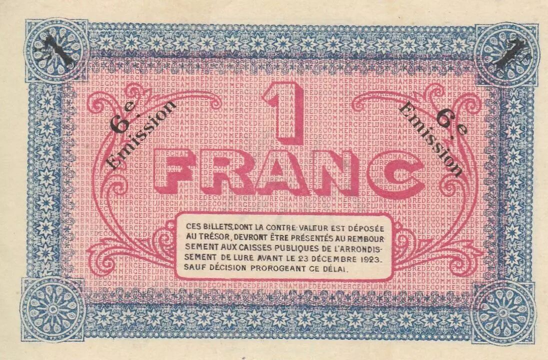 Accueil > Archivage > archivage-Billets Français > France 1 Franc - Lure - Chambre de Commerce - 23-12-1920 - Série G5