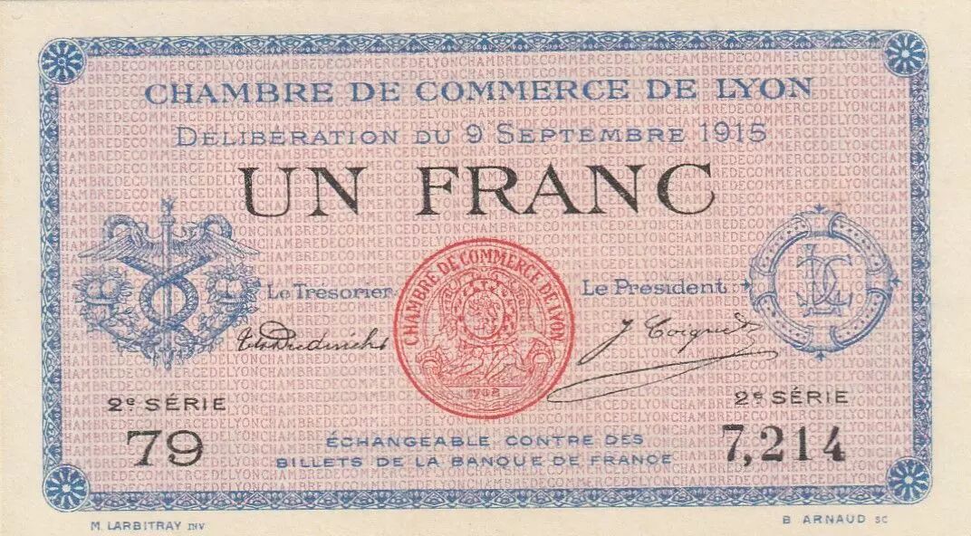 Billet France 1 Franc - Lyon - Chambre de Commerce - 09-09-1915 - Deuxième Série