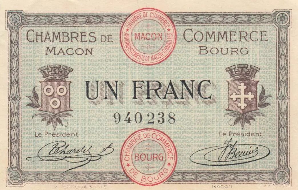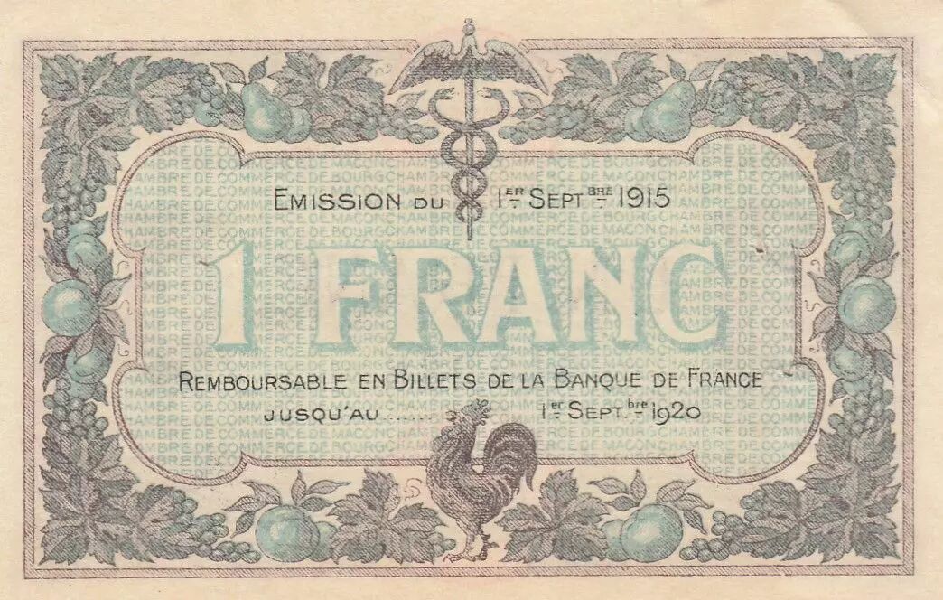Banknote France 1 Franc - Macon - Chamber of Commerce - 01-09-1915
