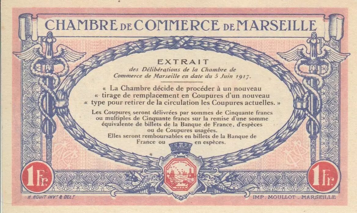 Accueil > Billets Français > Billets de Nécessités (1789-1945) > 1914-1925 Chambre de Commerce > France 1 Franc - Marseille - Chambre de Commerce - 05-06-1917 - Série H-R