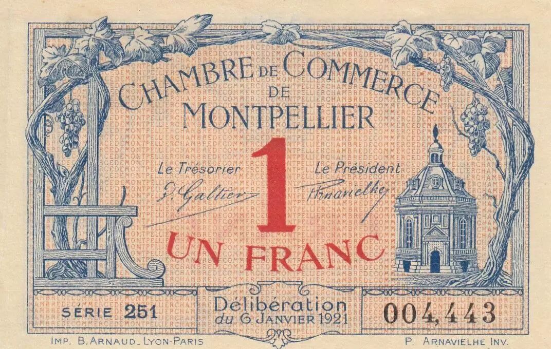 Billet France 1 Franc - Montpellier - Chambre de Commerce - 06-01-1921 - Série 251