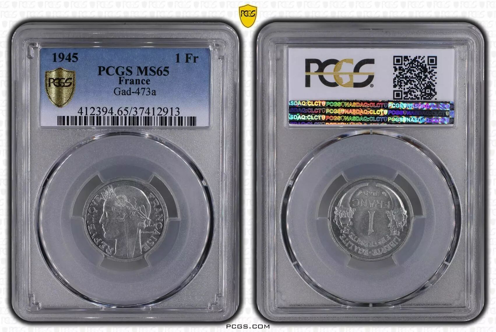 Pièce France 1 Franc Morlon - 1945 - Légère - PCGS MS65