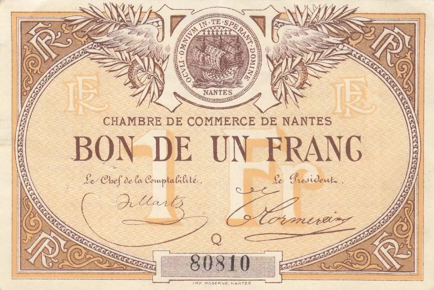Accueil > Billets Français > Billets de Nécessités (1789-1945) > 1914-1925 Chambre de Commerce > France 1 Franc - Nantes - Chambre de Commerce - 1918 - Série Q