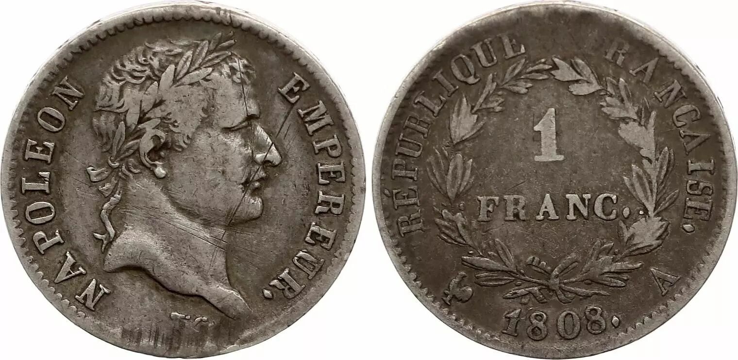 Home > > France 1 Franc Napoleon I - 1808 A Paris Silver