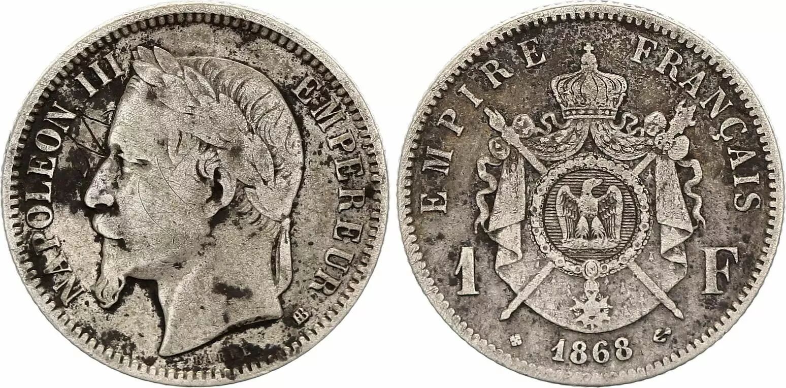 Accueil > Archivage > France 1 Franc Napoléon III - 1868 BB Strasbourg - Argent