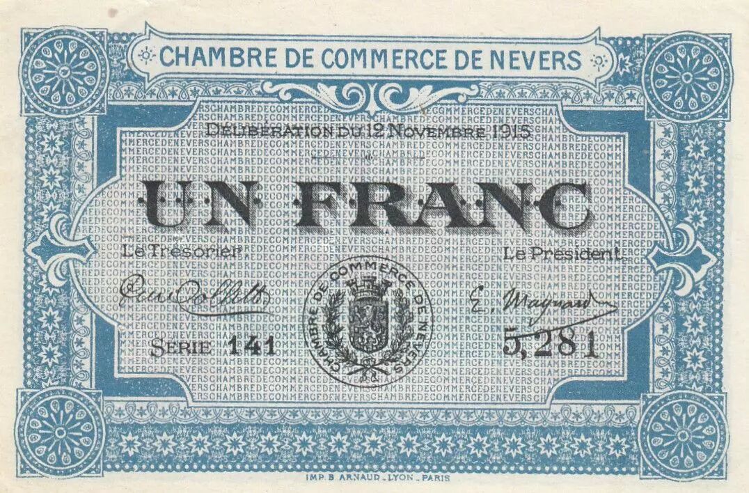 Banknote France 1 Franc - Nevers - Chamber of Commerce - 12-11-1915 - Serial 141