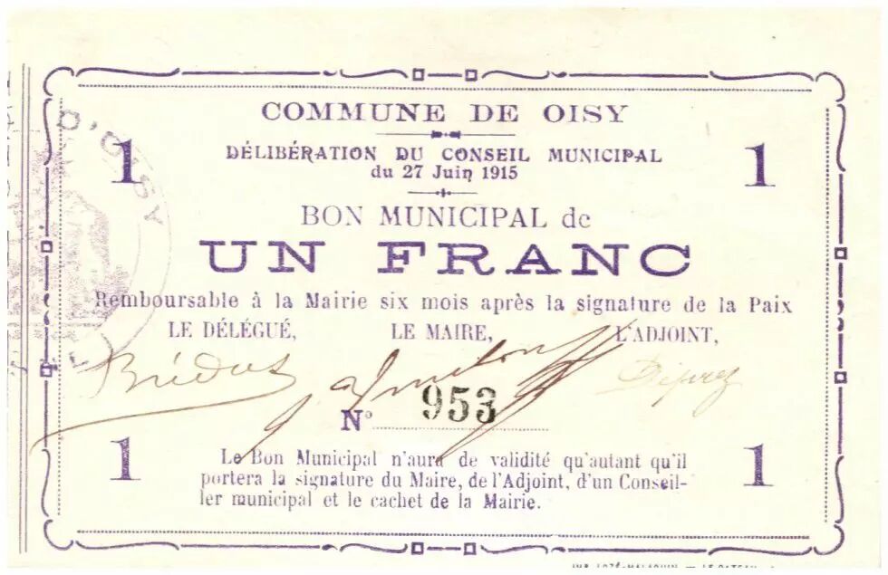 Billet France 1 Franc Oisy Bon Municipal - N953 - 1915
