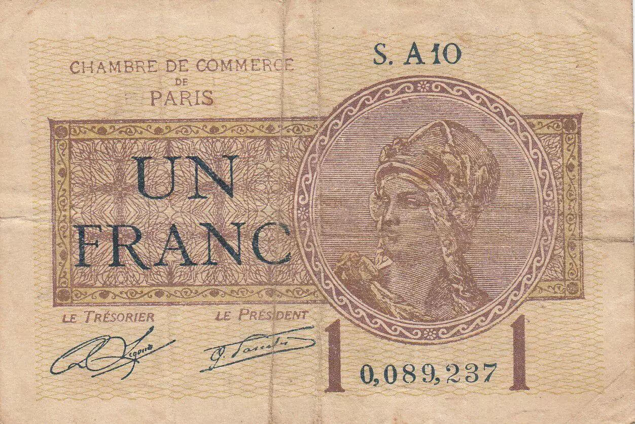 Banknote France 1 Franc - Paris Chamber of Commerce - 1919-1922 - F - Serial A.10