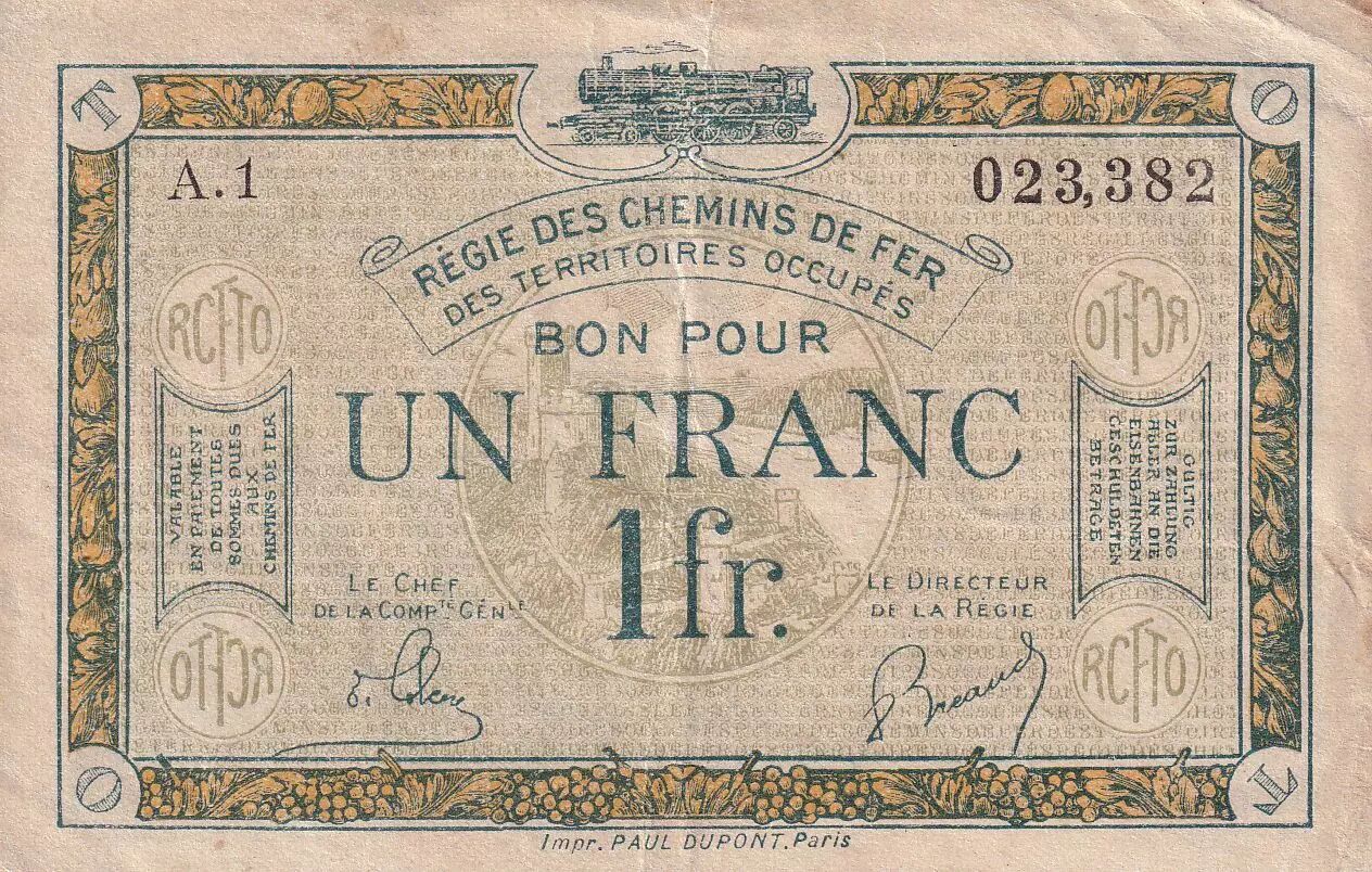 Billet France 1 Franc - Régie des chemins de Fer - 1923 - Série A.1 - 135.05